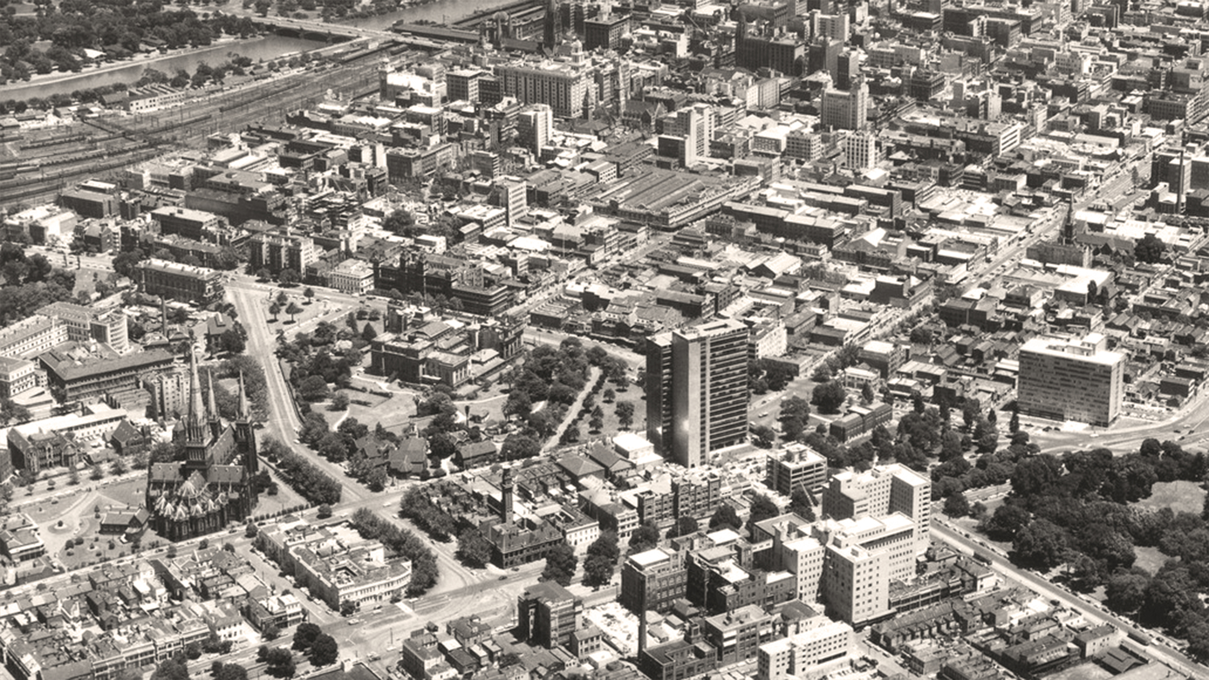 The elevation and the convergence of urban axes on site determined a series of architectures of power to populate the context. Confronting Parliament Hill are the buildings of the Treasury Precinct, showcasing the neoclassical proportions and horizontality typical of many architectures of power. The architecture of faith, manifest in the neogothic verticality of St Patrick’s Cathedral, skewed towards the Bourke Street Axis to claim power over the urban grid. The architecture of capitalism, manifest in ICI House, the patient zero of tower development in Melbourne.